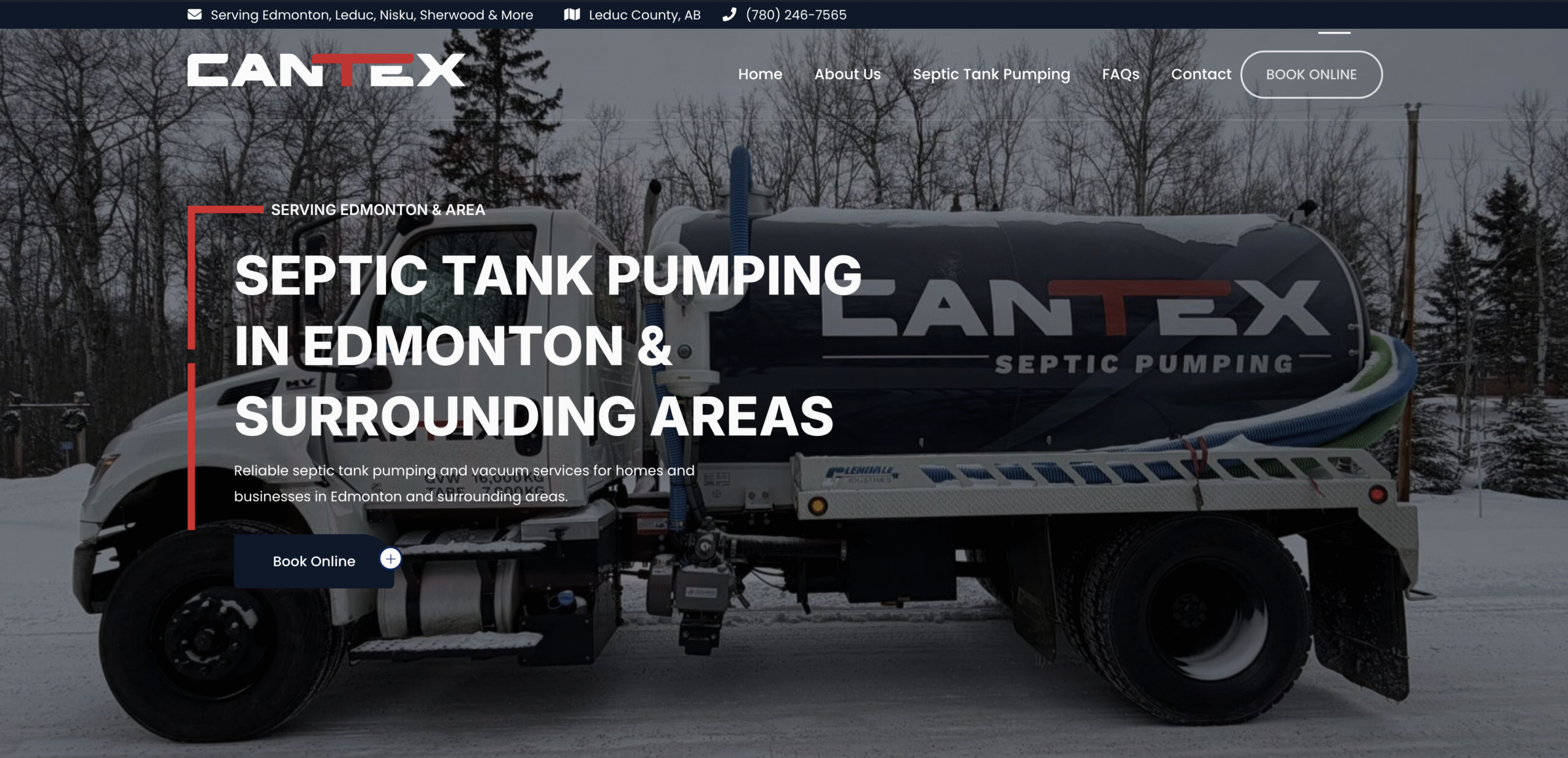 Cantex Septic Pumping needed a strong online presence to help homeowners in Edmonton and surrounding rural areas easily request septic services. I designed and developed a clean, conversion-focused website with clear messaging, strong calls-to-action, and integrated a Jobber request form to streamline service bookings across all devices. I also implemented on-site SEO and managed their Google Ads and Facebook Ads campaigns to generate qualified leads and increase service inquiries.